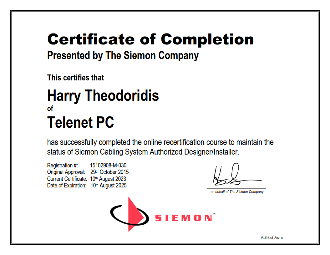 Καλωδιώσεις κορμού Tηλεμετρίας, Security & CCTV